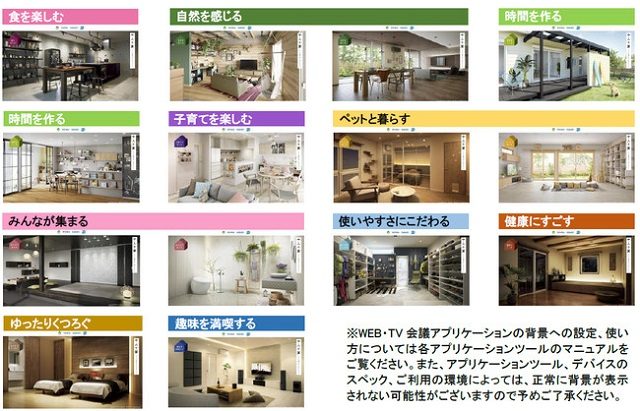 WEB・TV会議アプリケーションを用いた会議やプライベートでの打ち合わせなど、さまざまな場面で利用可能。あこがれの暮らしを実現するリモデルプランをバーチャル背景画像として提供することで、“十人十家”の提案を強化していくという。