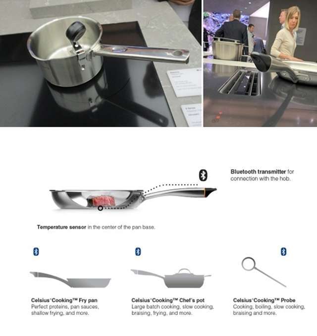 こちらは調理器具とIHクッキングヒーターの“会話”。IHクッキングヒーターと専用の鍋やフライパンが、ブルートゥースを通して温度管理などの情報を交換する(Asko)
