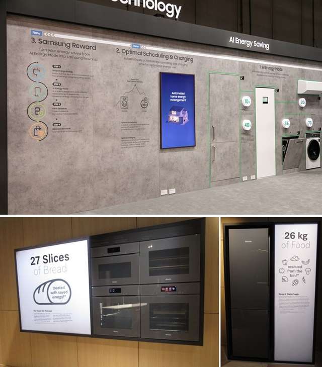 スマートハウス化で家全体のエネルギー効率を管理するエコパネル展示。テクノロジーが生み出す環境負荷への軽減を分かり易く伝えている