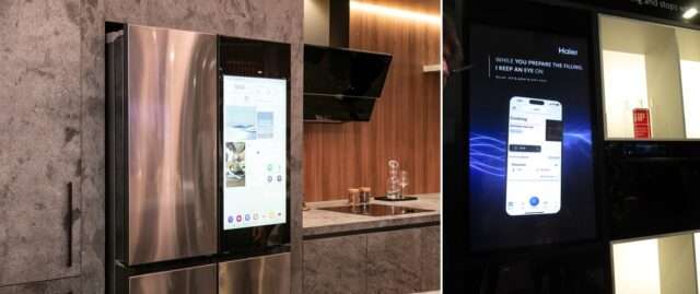 キッチン家電と使い手との間にも広い意味でのインタラクティブな関係性が生まれています。仲介役はスマートフォンやタブレット、PC。人が近づくとモーションセンサーが「いらっしゃい」と点滅する冷蔵庫も