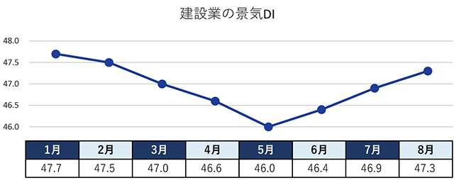 帝国データバンク(TDB、東京都港区)が9月4日公表した、2024年8月の景気動向調査結果によると、景気DIは前月比0.5ポイント増の44.3となり、2カ月連続で改善した。「建設」のDIは47.3で、同0.4ポイント増と3カ月連続で改善している。全国的な猛暑と地震・台風の影響を受けながらも、冷房設備工事の需要拡大や自然災害に備える駆け込み需要が景気を支えた。