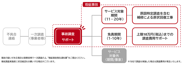 新サービスでは、雨漏りなどの事故発生時に、調査と原因特定をサポートする事故調査サポートを追加するほか、防蟻保証(20年間)・地震保証(10年間)、共同住宅への対応など各種オプションを拡充。雨漏りトラブルの早期解決と住宅事業者の人材不足をサポートする。