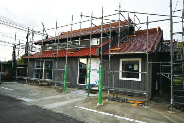 来年3月完成・4月オープン目指してリノベ工事が進む「ひかり荘」。本社敷地内にある梅村社長の生家。完成後、自社の常設リノベモデルハウスやオフィスとして運用し、一部には店舗も入る予定だ