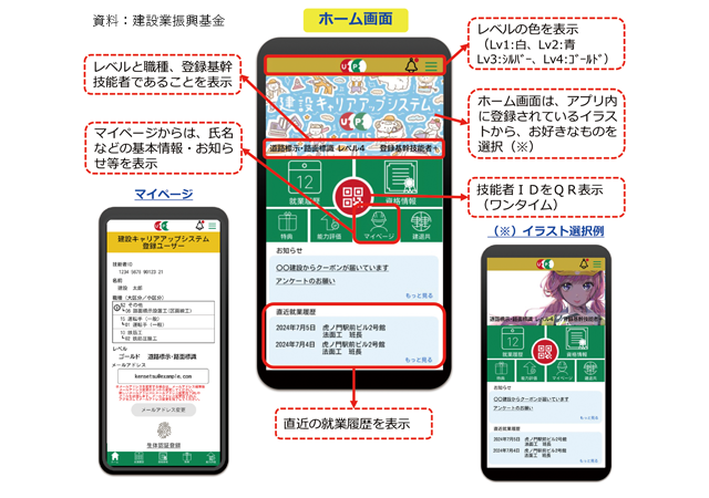 国土交通省は7月に公表した「CCUS利用拡大に向けた3か年計画」(PDF)の中で、技能者や建設企業が実感できるCCUSのメリットの一つとして登録技能者用のアプリの導入を挙げており、これによりCCUSの活用や事務作業の効率化・省力化が進むと期待している。