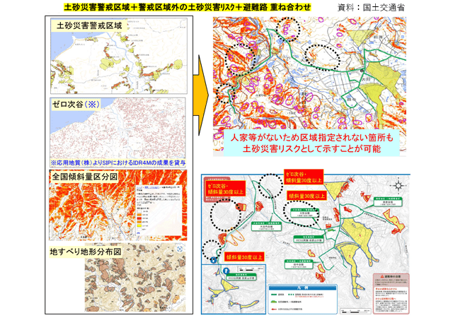 提言では、近年警戒区域外で発生した土砂災害で人的被害が生じている状況を踏まえ、高精度な地形情報を活用した調査により土砂災害警戒区域のカバー率向上を図る考え。基礎調査結果の公表までに時間を要する場合には、調査の実施を事前に公表することも想定している。