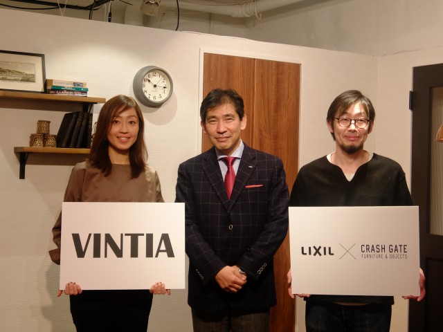 「近年の多様化するデザインニーズには、ベーシックなデザインだけでは対応できない。ちょっと奇抜でとがった商品が必要」(LIXIL、古島照生インテリア事業部長)。また、「インダストリアルスタイルは、小物や家具にもこだわってヴィンテージ感を出すことで成り立つスタイル」とし、個性的でカジュアルな空間提案を得意とする関家具(福岡県大川市)が運営するインテリアショップ「CRASH GATE(クラッシュゲート)」とコラボレーションし、インテリアや家具も含めてインダストリアルスタイルの空間そのものをトータルコーディネートで提案できるようにした。