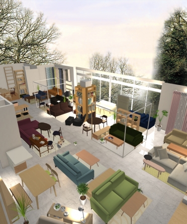 「リッチ ナチュラル」をテーマにした初のソファ専門店で、感度の高いファミリー層やDINKSにリビングでの過ごし方を提案。カラーバリエーション豊富なカバーリングソファを中心に、北欧スタイルのテーブルやチェア、キャビネット、カーテン、照明やインテリアアクセサリーなど約790点が用意され、こだわりのソファとインテリアに囲まれたくつろぎの時間を体感できる。
