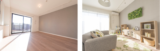 「駅前で便利に、豊かに暮らそう。」をコンセプトにした横浜市の賃貸マンションで、「小さなお子さまを持つ30代の夫婦」の2LDK(54.28m2)と、「自分らしいシングルライフを楽しむ20代後半の働く女性」の1LDK(48.30m2)を想定し、それぞれのライフスタイルにあわせたコーディネートを提案。家具やファブリック、小物にいたるまで、「暮らしに役立つ機能」を備えたカインズのアイテムを使用し、生活を便利で豊かにするアイディア溢れる空間を実現した。また、オリジナルのDIYアイテムを設置するなど、「生活を楽しむ提案」も行っている。