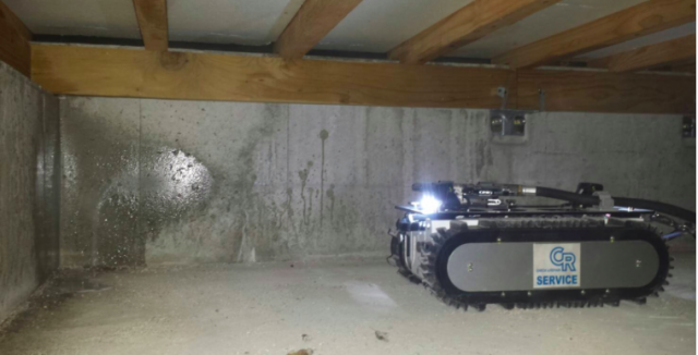 建物外から床下の施工ロボットを遠隔操作して防蟻処理の薬剤を散布