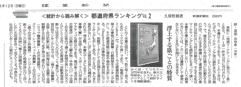 新建ハウジングの発刊元である新建新聞社が今年1月15日に発刊した『都道府県ランキング vol.2』が読売新聞(3月12日掲載)の書評欄で紹介されました。書評を書いてくださったのはあの宮部みゆきさん!大変光栄です。