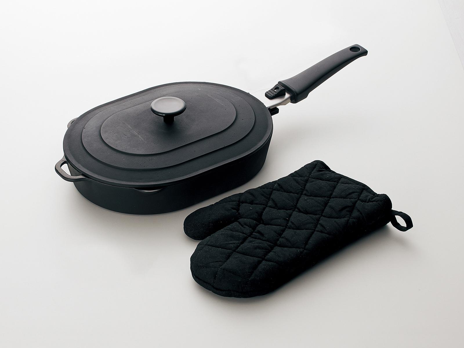 専用付属品の「ほっとくっキングリルパン」。魚料理10種、肉料理7種、野菜料理3種の計20種類の料理コースを搭載した「グリルパンモード」を設定し、献立を考えたり調理をする手間を効率化する。