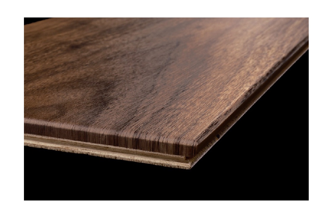人気の銘木柄の特殊化粧シートを四周木口面にまで巻き込むことで、厚単板化粧床材のような立体感のある美しい意匠を実現。 今回発売するのはチーク柄とマホガニー柄で、赤みのある濃色を再現した。これで淡色から濃色まで全9柄のラインアップとなる。 12x178x1818mm。3万7000円/梱(10枚入り、3.2m2)。