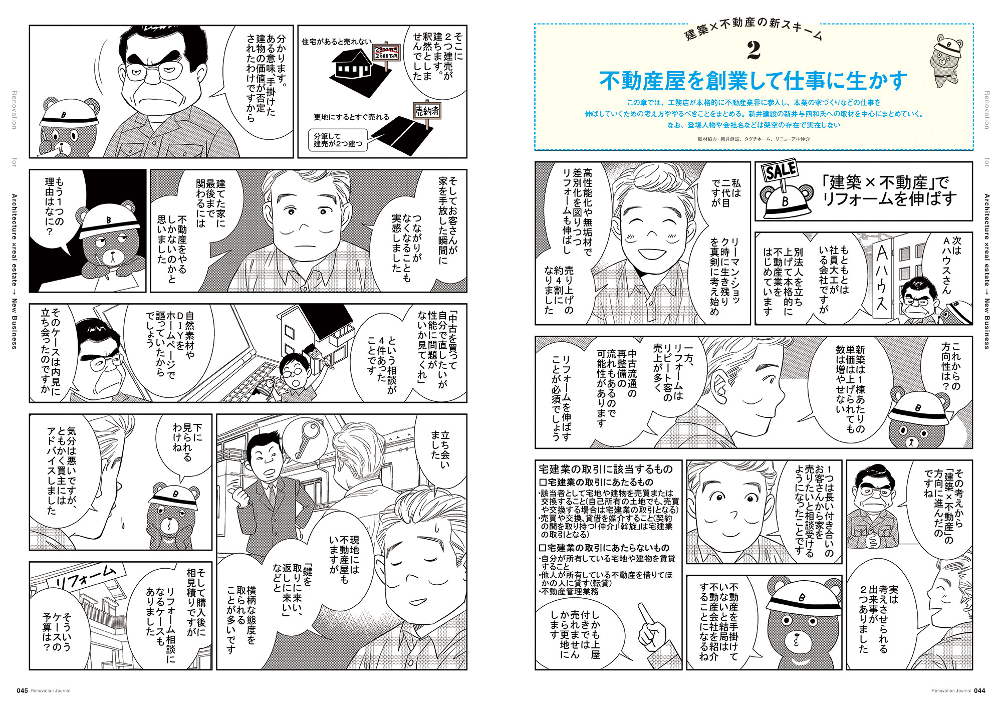 中古物件やリノベーションとなれば切っても切れないのが「不動産」。だけど不動産を創業するのは二の足を踏んでしまう。今回は工務店や設計事務所が経験した不動産業界の実情や、不動産業を創業し仕事への活かし方など実践テクニックなどを掲載しています。
