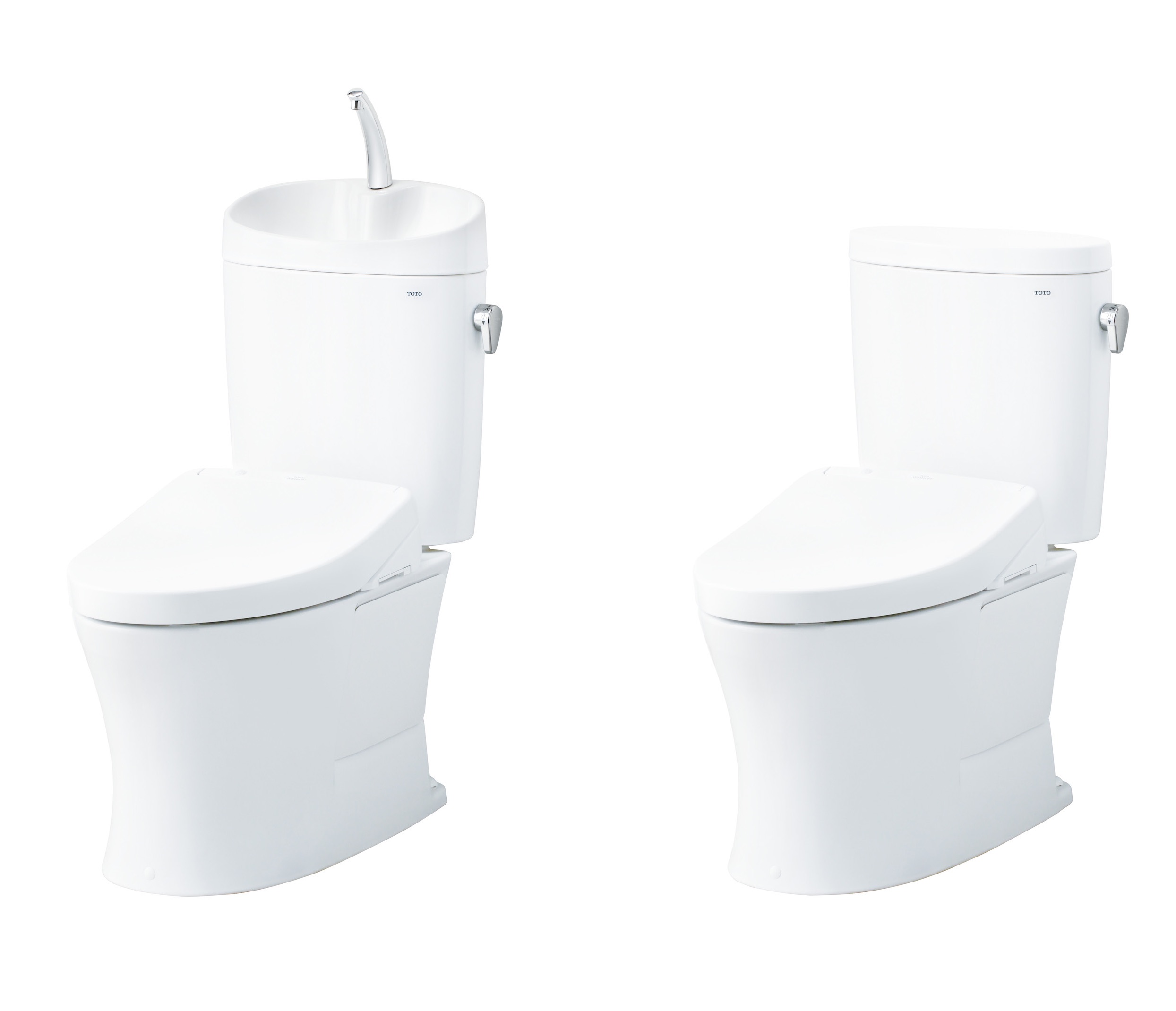 手洗い付きのタンクタイプは、従来品よりボウルを深くして手洗いのしやすさを向上、水はねを軽減した。また、手洗いなしタイプは従来よりタンク高さを61mm低くし、コンパクトになった。