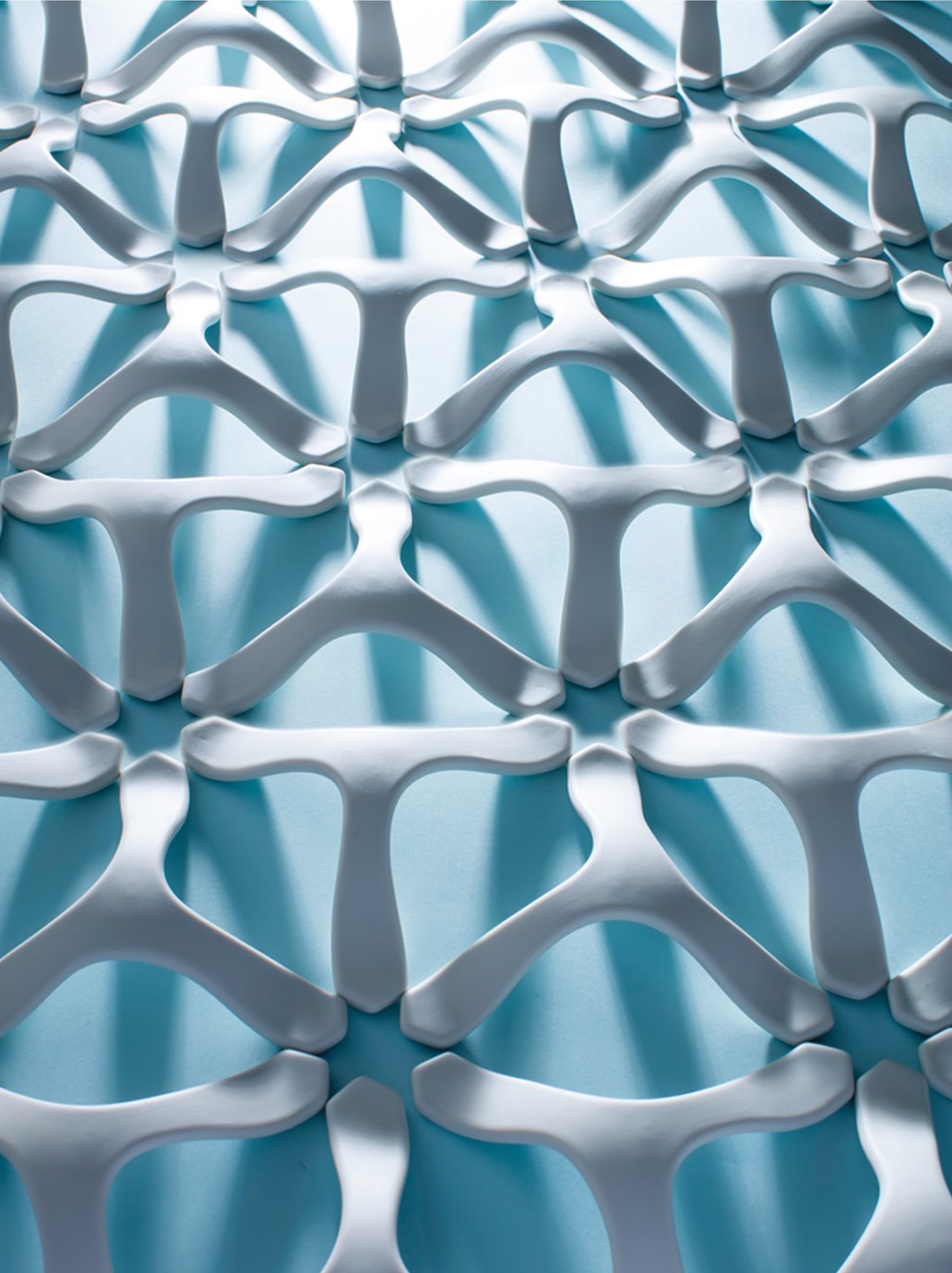 木漏れ日をイメージした3次元タイル「KOMOREBI」。約115.2x133x30。ホワイト1色。1200円/枚。