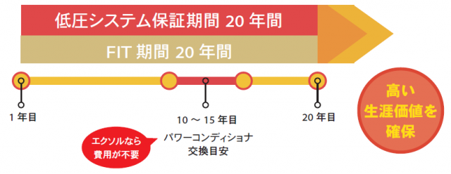 エクソル(京都市中京区)はこのほど、無償の低圧システム20年保証プランの提供を開始した。保証条件を満たすことで、低圧太陽光発電システム(50kW未満)の保証期間が、FIT(固定価格買取制度)の買取期間と同じ20年間になるもの。