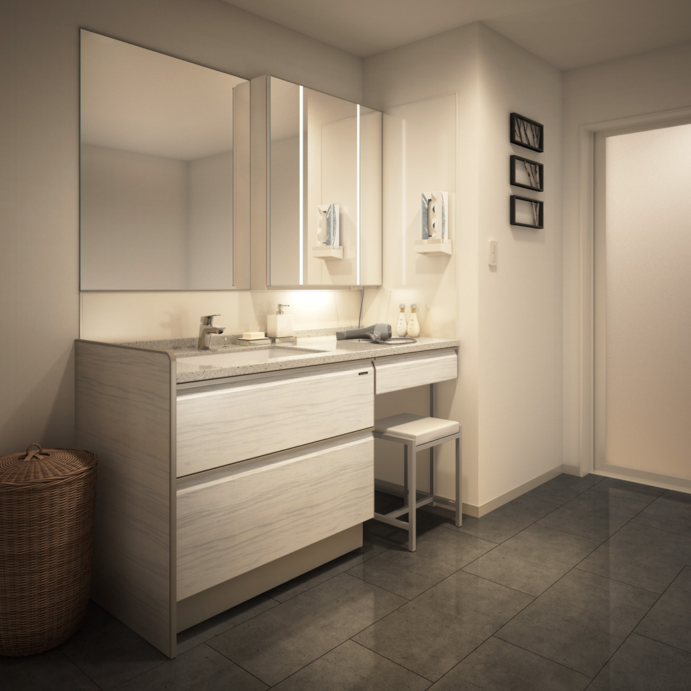今回は、生活スタイルや理想の暮らし方の多様化を受けて、「身支度の場」としてだけでなく、リラクゼーションやゆとりの要素を加えた。