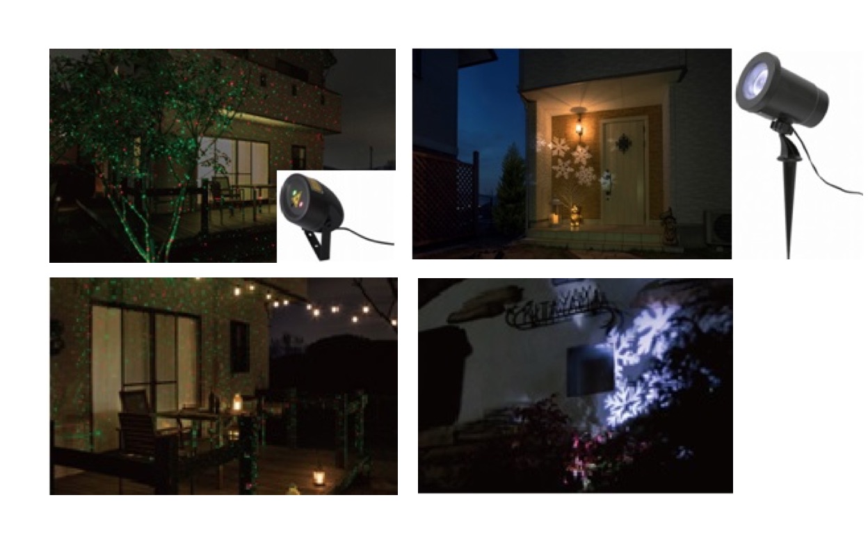タカショー(和歌山県海南市)は9月1日、家庭向けの主力ブランド「LED GARDEN」から、庭をレーザーやプロジェクターで照射するガーデンイルミネーションアイテム2種類を発売する。従来のようにコードを樹木などに巻く電球式イルミネーションではなく、庭木やファサード、パーティーの演出など照射したい場所に設置して電源を入れるだけで光の演出を楽しむことができる。