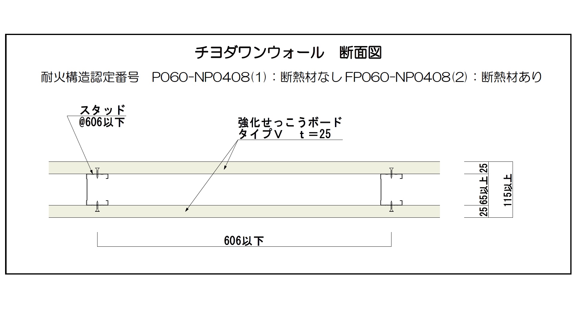 チヨダウーテ(三重県四日市市)は9月、両面1枚張りの耐火間仕切壁「チヨダワンウォール」(耐火ウォール25)を発売する。