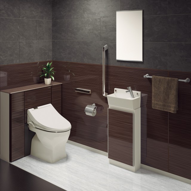 タカラスタンダード(大阪府大阪市)は、トイレ向け内装材「ホーロークリーントイレパネル(フロア用)」に床全体をカバーする「全面タイプ」を追加した。
