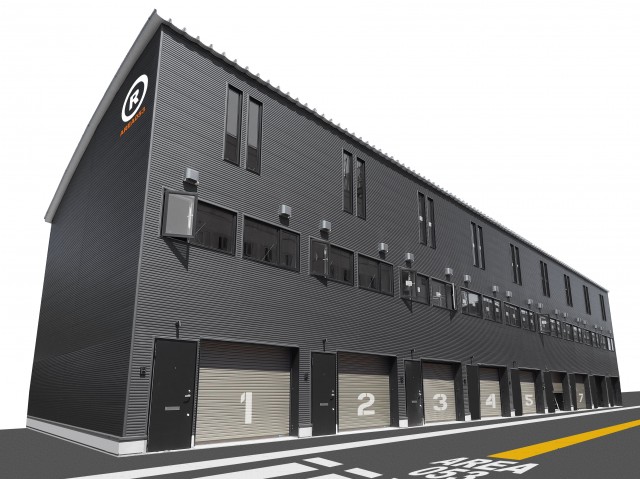 「ガレージアパートメントAREA053」は、単一の軽量鉄骨パネルをボルトでつなぎ合わせて構成する「LGS(Lite Gage Steel)システム」による合理的なローコスト追求と、黒扮装塗装が施されたLGSパネルの鉄の素材感が醸し出すハードボイルドな空間のテイストが持ち味。今までになかったモーターライフを楽しめる、新基準のガレージ付き賃貸アパートとして提供する。