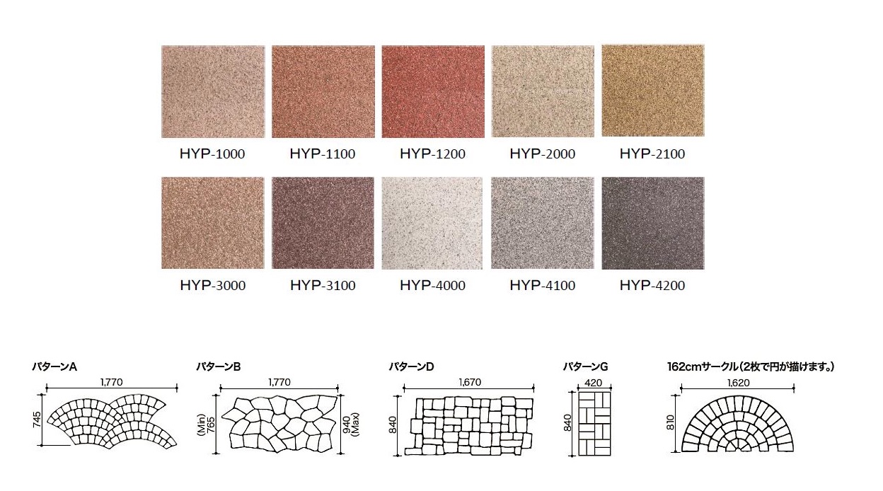 エービーシー商会(東京都千代田区)は、コンクリートやアスファルトコンクリートのうえに自然石調のデザインをほどこすことができる舗装材「デザインクリートST-HYP(エスティハイパー)」のカラーバリエーションを刷新した。