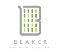 「BEAKER日本橋人形町」は、東京都中央区日本橋人形町に位置する築37年の住宅・寄宿舎のビルを、用途変更を伴うリノベーションを施して再生させる5年限定のプロジェクト。ロゴは、物件名にもなっている「BEAKER(=ビーカー)」と建物をモチーフとしたもので、異なった分子が混ざり合うことで化学反応が起こり、新たな物質が生まれるように、「新たな出会いや価値が生まれる場所となるように」という意味合いを込める。