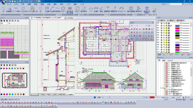 「DRA-CAD」は、建築の企画から生産、運用までのあらゆる場面をカバーし、様々な業種、職種で利用できる設計支援ソフト。PDFのCADデータ変換をはじめ、様々な形式のデータを有効利用でき、他社CADデータ(DWG/DXF/JWW)やSXFとの互換性に優れる。IFCファイルを介してBIMソフトとも連携可能。面積表や建具表、法規対応機能、構造図作成コマンドを標準装備し、画像や文字の表現手法も多彩に備える。