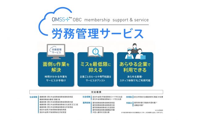 「奉行シリーズ」のオービックビジネスコンサルタント(東京都新宿区)は、従業員と総務部門の業務を効率化し、社会保険・労働保険の手続きを削減する「OMSS+ 労務管理サービス」を発売する。