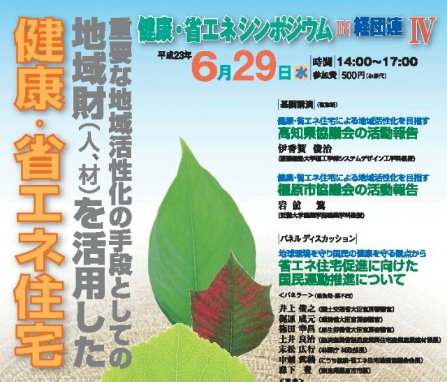NPO法人シックハウスを考える会(大阪府四条畷市、上原裕之理事長)と健康・省エネ住宅を推進する国民会議(大阪府四条畷市、上原裕之議長)は6月29日、東京・千代田区の経団連会館で第4回の「健康・省エネシンポジウム」を開催する。
