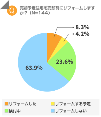 不動産関連の比較査定サイト「スマイスター」を運営するシースタイル(東京都中央区)はこのほど、11月18日の「住宅リフォームの日」(一般社団法人日本記念日協会認定)に合わせて、「スマイスター」の利用者で、住宅の売却を予定する成人男女全国144人を対象に「売却予定住宅のリフォーム」についての調査を行った。