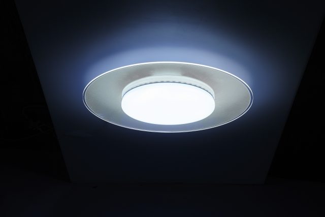 140mm幅の大型導光板パネルと光拡散レンズにより、光の広がりと必要な明るさを確保。10段階の調光、7段階の調色が可能で、好みの明るさを記憶するメモリー機能を備える。明るさ3800lm。径600x高さ95mm。1万4000円。