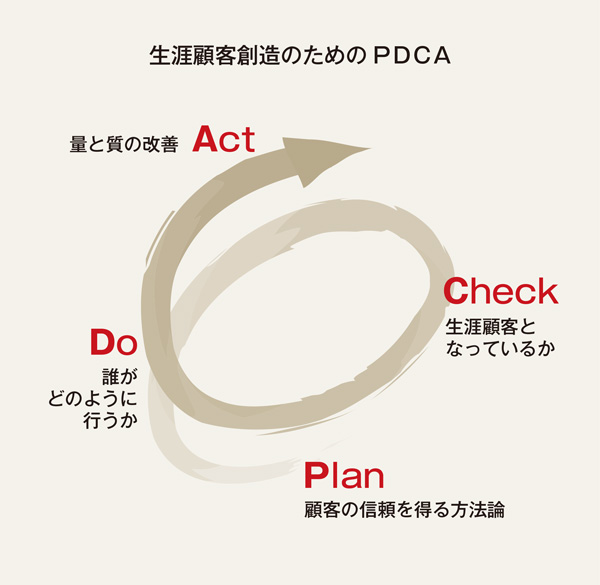 P(顧客の信頼を得る方法論)D ( 誰がどのように行なうか)C(生涯顧客となっているか)A(量と質の改善)のサイクルを繰り返す事で、段階的、螺旋的に販促に頼らないビジネスモデルが完成に近づいて行くはずです。