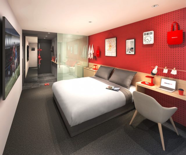 部屋のイメージ。ホテルのようにアメニティグッズも充実している。今後、グランピングタイプやリゾートタイプなども展開していく