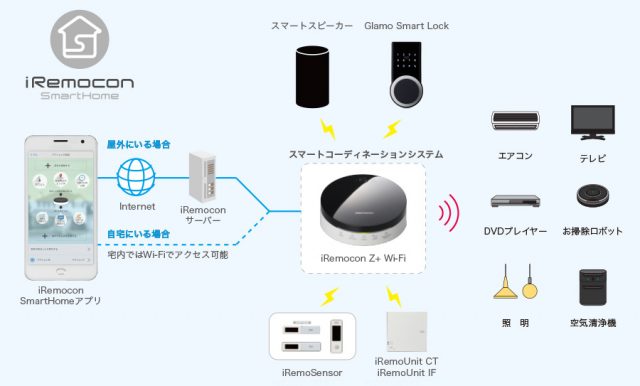 グラモ(東京都豊島区)はこのほど、スマートスピーカーと連携し、住宅を自動でコントロールするための次世代IoTスマートホーム自動制御システム「スマートコーディネーションシステム」を開発した。また、同システムを操作する「iRemoconSmartHome」アプリと対応ハードウェア「iRemoconZ+ Wi-Fi」および対応センサー群「iRemoSensor」を、12月12日からBtoB向けに提供開始した。