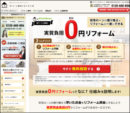 具体的には、セカイエが運営するオンラインリフォームサービス「リノコ」にて、借り換えで得になる金額内でのリフォームにより実質現金負担0円でリフォームができることを訴求する。WhatzMoneyは、借り換えの試算・提案、審査手続きを支援し、実質現金負担0円のリフォーム実施を支援する。