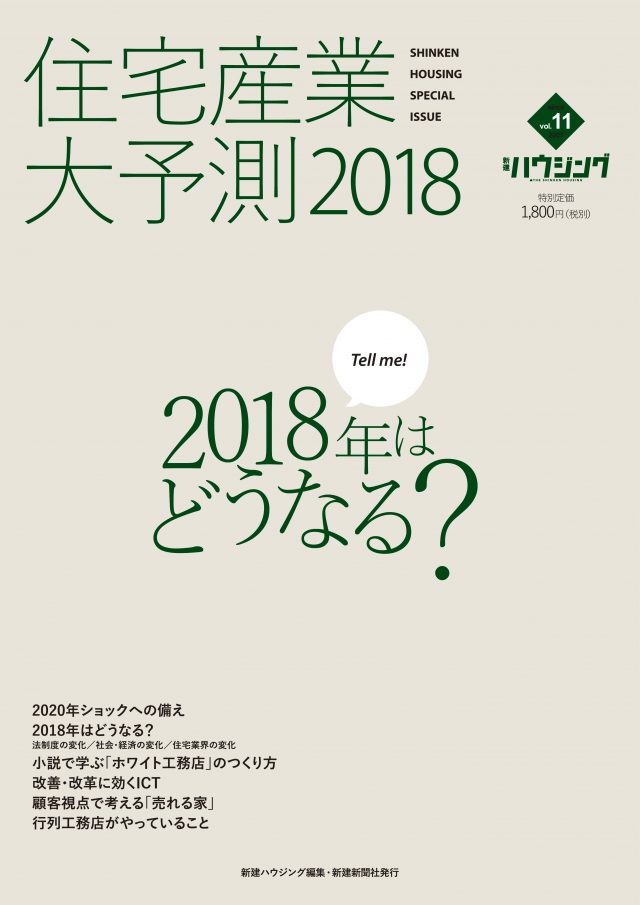 巻頭言は2018年のテーマとやるべきこと、私たちはどう生きるか。また「2020年ショック」への備えとして、対策を考えます。そのほか、法制度、社会・経済の変化、住宅業界の変化など、2018年を鋭くえぐります。