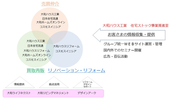 新ブランドでは、グループ各社が取り組んでいる住宅ストック事業に関連する総合窓口を新たに設け、全国の客からの相談や要望に応じ、一気通貫のワンストップサービスを提供する。また、グループ各社が保有する不動産物件情報を閲覧できるWEBサイトを1月25日に開設する。