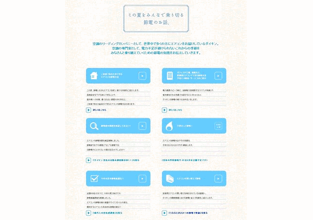 「この夏をみんなで乗り切る節電のお話」( http://www.daikin.co.jp/setsuden/ )