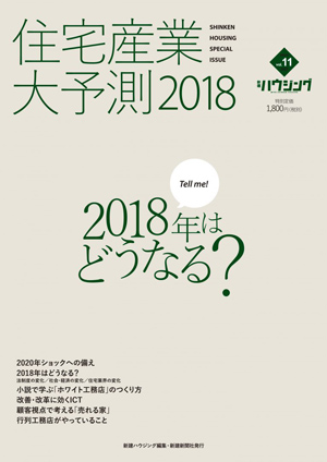 「新建ハウジング」が、工務店を中心とする地域の住宅産業の目線に特化して2018年の住宅市場と住宅産業を予測し解説します。巻頭言は2018年のテーマとやるべきこと、私たちはどう生きるか。また「2020年ショック」への備えとして、対策を考えます。そのほか、法制度、社会・経済の変化、住宅業界の変化など、2018年はどうなるのか・・・。