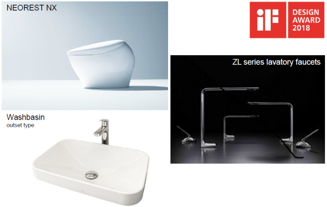 TOTO(福岡県北九州市)は2月8日、同社のウォシュレット一体形便器「ネオレストNX」と「台付シングル混合水栓ZLシリーズ」、「ベッセル式洗面器」の3商品が、iFインターナショナル・フォーラム・デザイン(ドイツ・ハノーバー)が主催する『iFデザイン賞2018』を受賞したと発表した。同社の受賞は今回で5年連続となる。