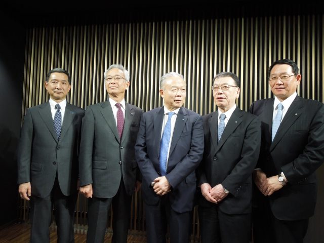 左から、大谷裕明氏(YKK代表取締役社長)、猿丸雅之氏、吉田忠裕氏、吉﨑秀雄氏、堀秀充氏