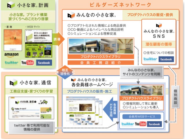今回スタートする「みんなの小さな家。」ビルダーズネットワークは、この「小さな家。計画」のインフラを使って工務店を支援するしくみ。