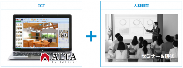 同社が3月5日にリリースした「ALTAリフォーム提案力強化パッケージ」は、住宅プレゼンツール「ALTA」と、ヒアリングテクニックやコミュニケーションスキルの強化を目的としたリ・ワークショップのセミナー・研修をパッケージ化したもの。