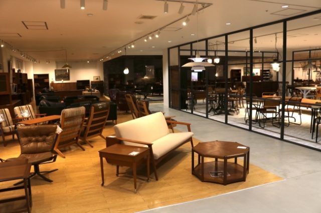 約4600m2の延床面積のうち、ビンテージ家具コーナーは約1200m2を超え、東京30km圏内でも最大級の規模。デンマーク・フランス・イギリスより直輸入した約1500点のビンテージ家具・雑貨を取り揃え、タイムレスデザインなビンテージ&アンティーク家具に囲まれた上質で自由な暮らしを提案する。