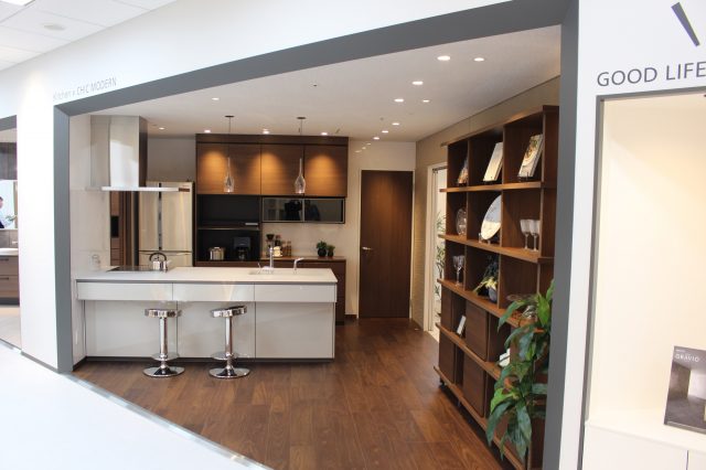 リニューアルでは、「お客様のQuality of Life(生活の質)の向上」をテーマに、6つの空間展示コーナー「スタイルショーケース」を新設。顧客の多様なライフスタイルにマッチした空間づくりのヒントとなるよう、3社の製品を効果的に配置したほか、食器や衣類、各種小物などにいたるまで具体的収納事例に盛り込んだ。展示のバリエーションを充実させ、提案力の強化を図る。