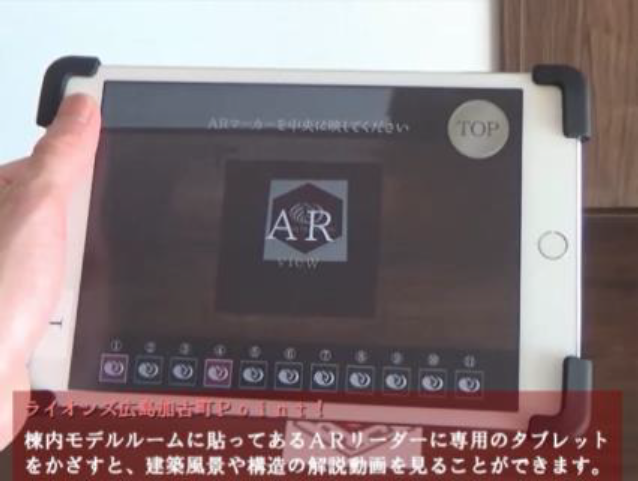 大京の「ライオンズ広島加古町」では、物件を客に案内する際、壁にタブレットをかざすとARで壁の中の様子(躯体)が見られるシステムを導入。建物が完成した後でも構造上の安全性を視覚的に確認できることから、客の安心につながるサポートとなっている。