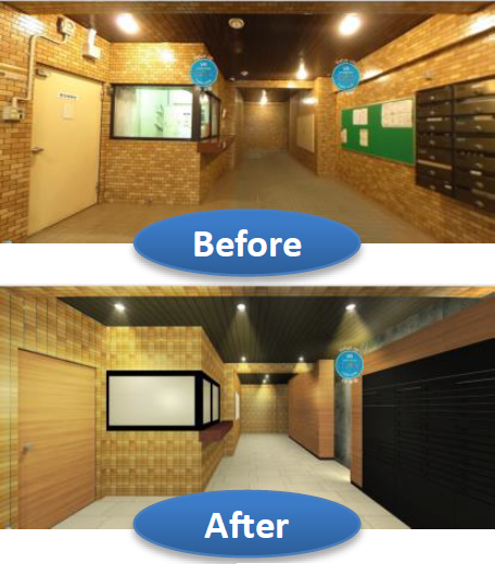 大京穴吹建設(東京都渋谷区)では、大規模修繕時にVRでエントランス改修イメージなどを確認できるサービスを開始。1月下旬には採用第1号となる千葉市のマンション管理組合で同サービスを用いた工事提案会を実施した。VR画像はQRコードで居住者全員に共有できるため、総会時にスムーズな意思決定が可能になる。