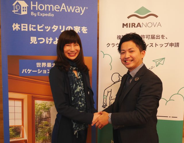 エクスペディアグループのバケーションレンタル会社ホームアウェイ(米国テキサス州 オースティン)は3月19日、民泊許可・届出手続のクラウドサービス「MIRANOVA(ミラノバ)」を展開するジーテック(東京都港区)との業務提携を発表した。