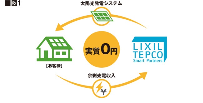 LIXIL TEPCO スマートパートナーズの「建て得バリュー」は、国が定めるZEH基準を満たす住宅であることなどを条件に追加の費用負担なしに太陽光発電システムの設置などを可能にする新しいサービスだ(図1)。